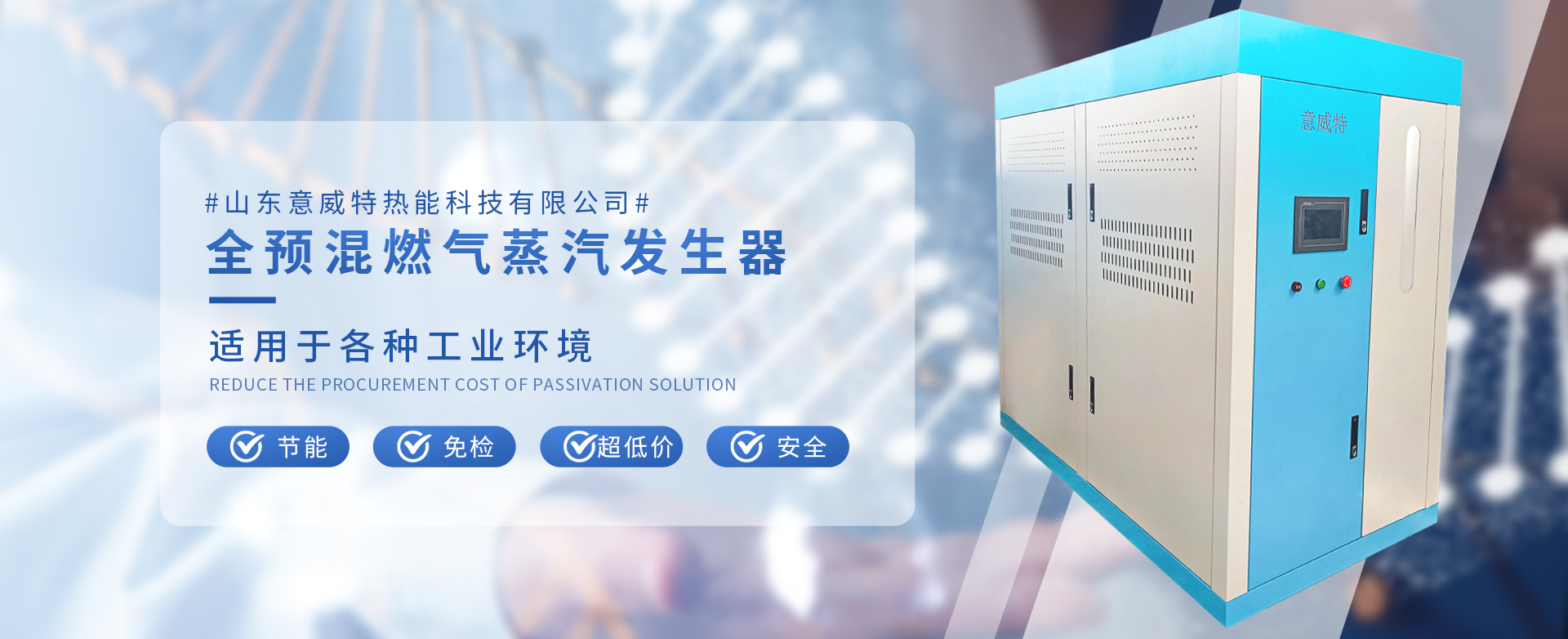 山東意威特熱能科技有限公司研發(fā)生產銷售:全預混蒸汽發(fā)生器,具有節(jié)能、超低氮NOX排放、低噪音、水容量少、啟動快、重量輕等特點。適用于各種工業(yè)環(huán)境、節(jié)能、免檢、超低氮、安全。